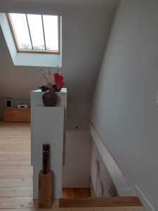 Création d’une pièce à vivre à l’étage: châssis de toit effet verrière, parquet grande largeur en sapin
