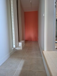 Le nouveau couloir distribue les chambres de façon indépendante. Couleur tonique en fond de la circulation en rappelle avec la cuisine